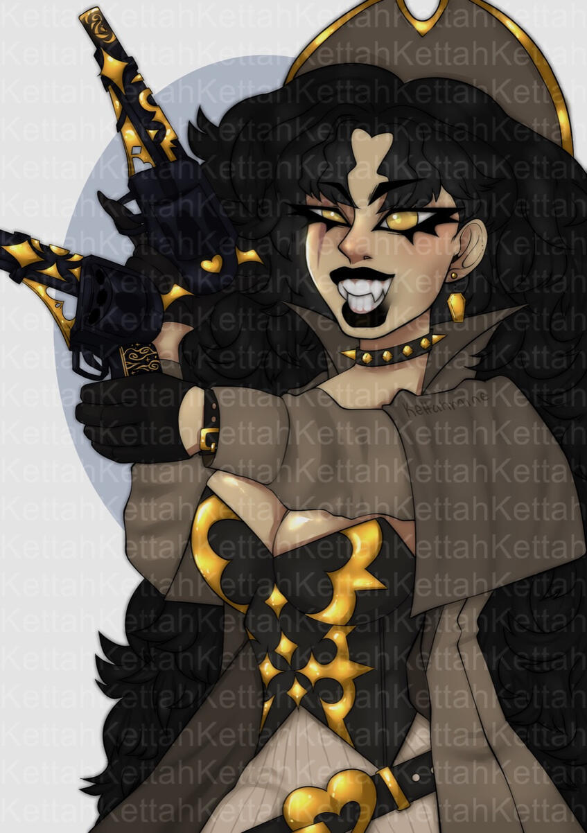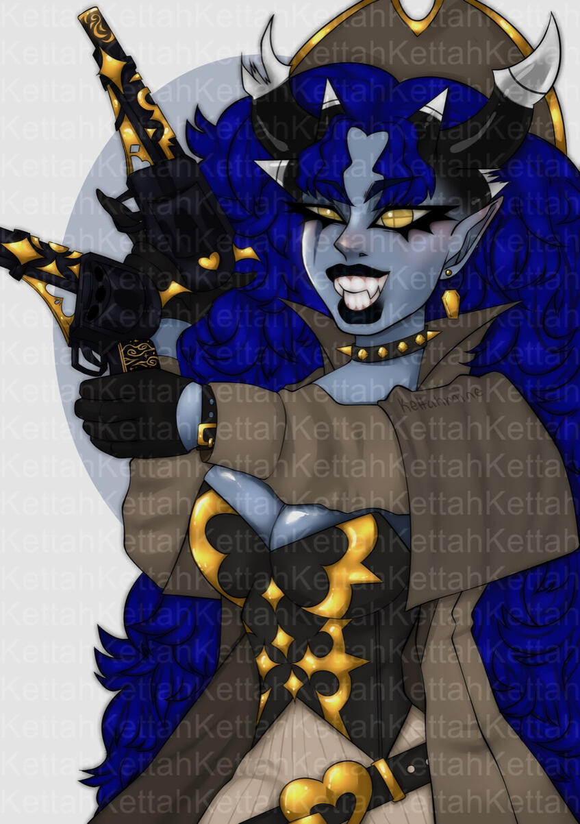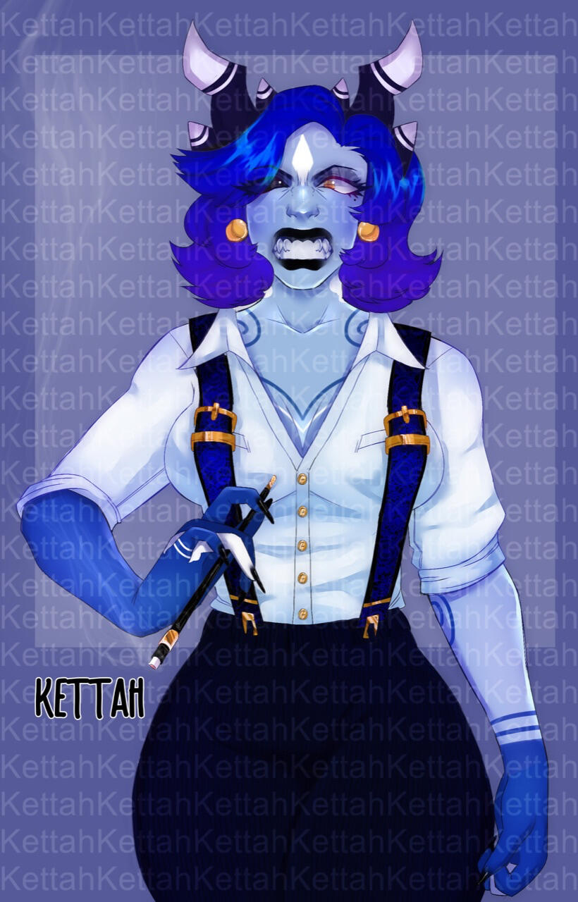 Any remarkable woman is a parasite of misfortune. Verlice Vonsweet, the only blue embodiment of seduction, is a testament to this. Beloved and obsessed by many in the hellfire and sin that was hell. Capturing the hearts of many with her beauty and songs.Although life wasn’t The greatest for the blue beauty, Verlice was raised by something worse than hell. The embodiment of envy and hate, Florence.Florence never cared about her offspring's wellbeing, barely giving her the bare minimum, only for when she would drag her to events to make her look ‘good’. Verlice often wore scrapped clothes that she learned to create on her own, sneaking in old sewing books from the town to learn to produce something for herself, Florence would break down often in anger and would scream to a Verlice on how she ‘ruined her body’ and ‘future’. Verlice made Florence into her true flesh. A disgusting, sardonic, bitter monster.Verlice grew up not by her mother, often neglected by her mother and emotionally abused, which caused Verlice to grow spiteful, hateful, and disgusted with herself.Florence and Verlice would often have arguments with each other, often having full physical fights with the woman she should’ve been able to call her mother, Verlice would always win against the woman, only losing a few times.Anytime Verlice was over her mother's actions, she’d go to the gunsmith of the town, and give the name to the owner, Xerxes, known by the town as ‘Pa’ , he was like a father the bastard child never had, she felt like she had a family to run to when she needed to.She never knew that Xerxes was related to her, him being her biological father and his children being half-siblings of her. Never having the guts to tell the poor demon until her mother was gone.The simple reason was, respecting Florence's wish, she wished for herself to be alone, she didn't want Xerxes to be in her life, or to even tell her.His history with the courtesan was pitiful. Florence using part of her seduction to trick him in a night, finding out about the pregnancy, although Xerxes was concerned and felt awful, Florence manipulated Xerxes into thinking she’d be fine with raising the poor child alone, and He was stupid enough to believe her.He regretted his choice seeing Verlice hurt every day.When Verlice was a teenager, she deemed it was time to get out of the hell hole.Verlice ran away from her town and went off to pride, it took a minute to get on her feet, and she purchased her first bass, and quickly began to make music, performing at bars and clubs. Gaining fans at each small performance.Growing to get small concerts, then bigger and bigger, before becoming a hit star in hell, this made her learn more instruments for her music, the guitar, and drums.Each live performance has caused Verlice to grow in popularity, each fan willing to do whatever she wishes with a please or command, creating her music agency, she has toppled the industry with little effort, not caring for the society of high classes of corruption she mingled and witnessed to.During the night of the extermination, verlice’s first one while staying in pride, and witnessing the violence in a high tower with other high-class members, she witnessed a familiar face.Her mother, no reason on why she was here, Verlice just stared, watching..Before she witnessed her mother get attacked by the exterminators.She just watched, as morning came, she found out her mother was taken to the hospital in pride.She was there until she passed.Verlice found the spear that attacked her mother afterwards.And She has kept the spear to this day.But the death she witnessed gave her an idea, a muse of some sort, a song was released alongside a new album, but not many know the meaning unless they look in the album’s notebooks.The song she released has been the most popular in all of hell.
